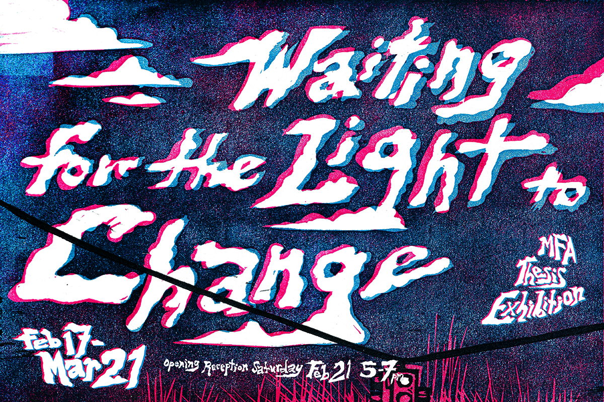 The 2026 MFA Thesis Exhibition for the Department of Art at The Ohio State University invites the public to encounter the richness of our interdisciplinary MFA program in Studio Art. Through coursework in the Department of Art and across other academic departments and centers, mentorship through independent study with art faculty, as well as a graduate students’ thesis committee, each MFA candidate pursues a unique and rigorous art practice for three years. Waiting for the Light to Change features the work of nine MFA graduate students whose art bravely responds to today’s cultural contexts.